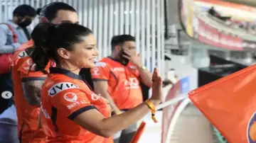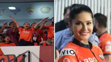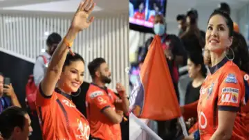 स्टैंड्स में बैठे-बैठे सनी कई मौकों पर अपनी टीम को चीयर करती नजर आई। जैसे ही उनकी टीम का कोई खिलाड़ी बाउंड्री लगाता सनी झूमने लगती।